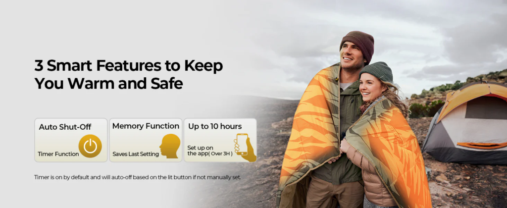 Whether you’re sitting by a campfire or relaxing under the stars, this heated blanket helps you stay warm without relying on open flames or fuel-based heaters.